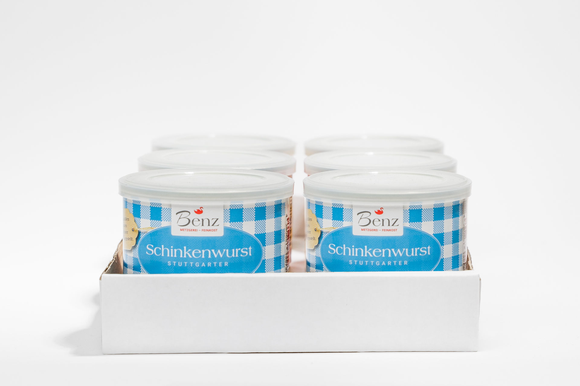 Zutaten: Schweinefleisch, Speck, Trinkwasser, Speisegelatine, Speisesalz, Dextrose, Gewürze, GEschmacksversätrker: E621, Saccharose, Säuerungsmittel: E262,E330,E575, Antioxidationsmittel: E300, E301.